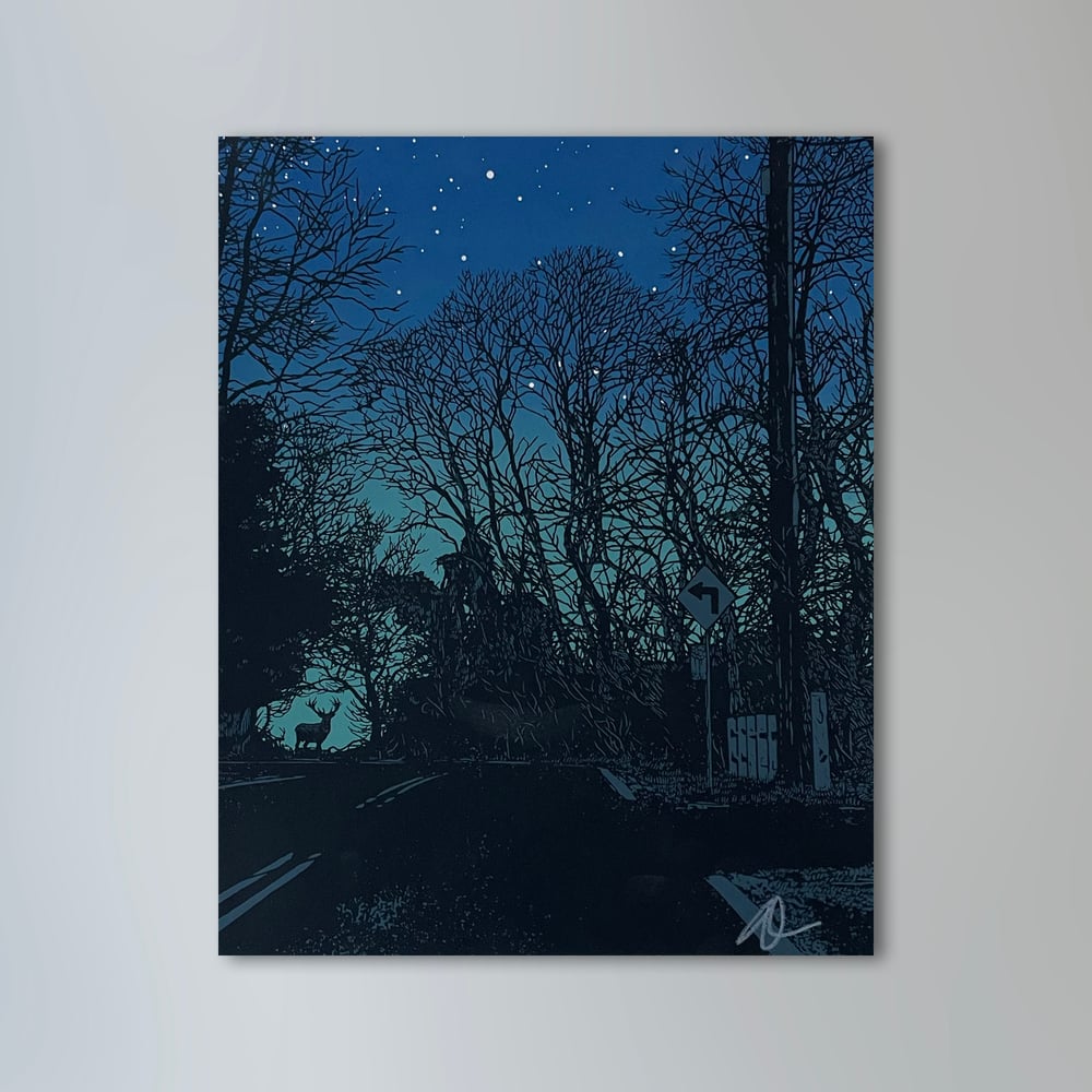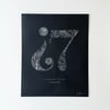 Each print signed, 8” x 10” and carefully packed in a screen printed envelope (Metallic silver on black). Packages will ship flat using USPS.
