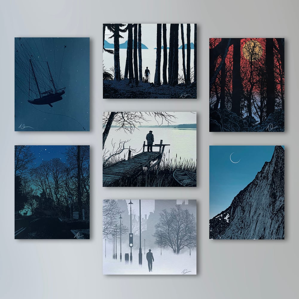 Here is a preview of one of the packages ready to ship out. Please note that the 7 prints will randomly be selected and no two packages will be the same.