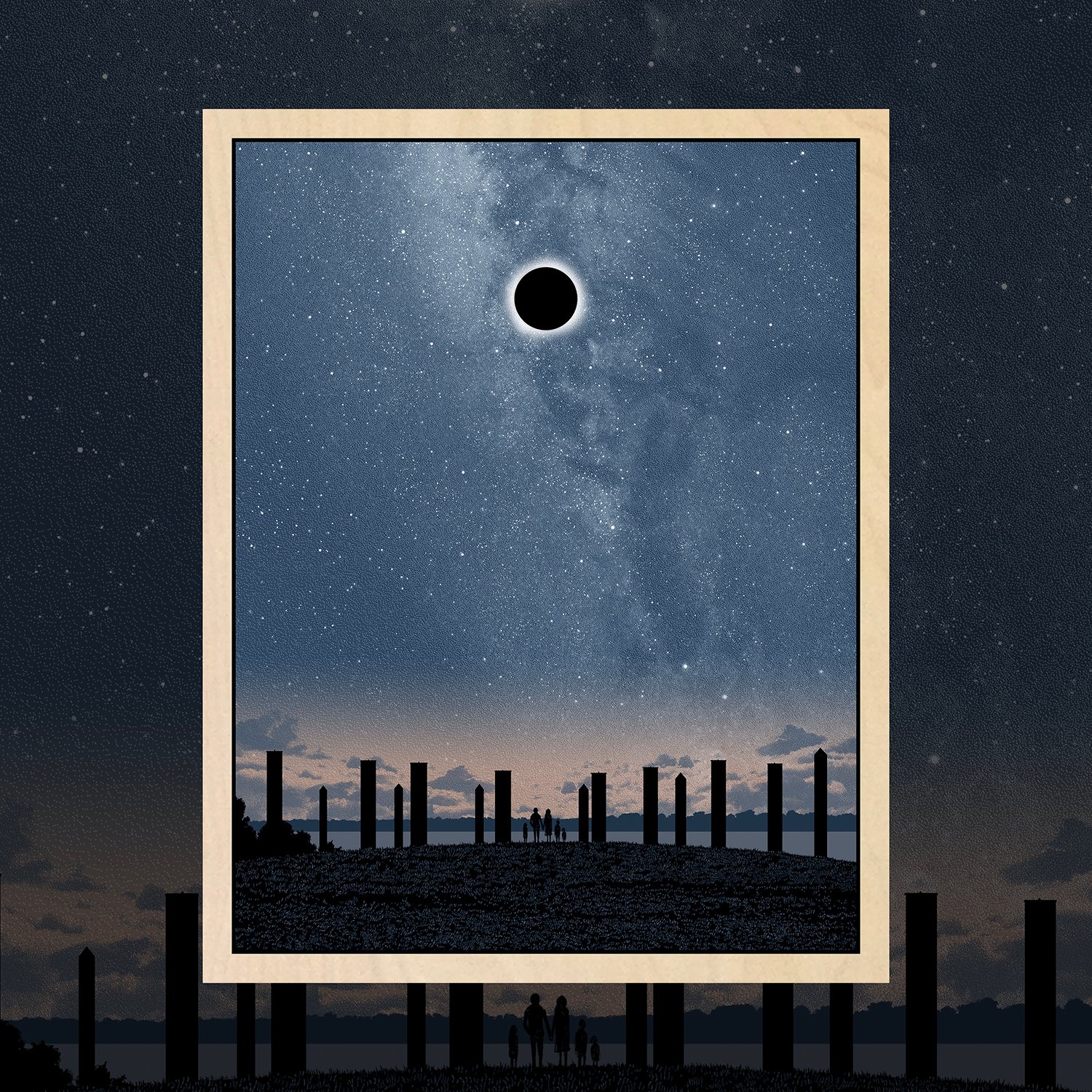THE BREAD CRUMB TRAIL is a print series based on geographic locations. The location where we saw the eclipse was exactly 37˚5’30” N 88˚35’49”W. We ended up at a park overlooking the Ohio river at the end of the Historic District along Water Street. There are these tall pillars that were part of dock that I was drawn to (they sort of looked like Stonehenge from a distance). The day was HOT (100˚+) and there were some fluffy clouds making me nervous they would block a full view of the Eclipse we drove 1000 miles to see. The experience ended up going perfectly and well worth the long drive. Looking forward to the next one in 2024!
