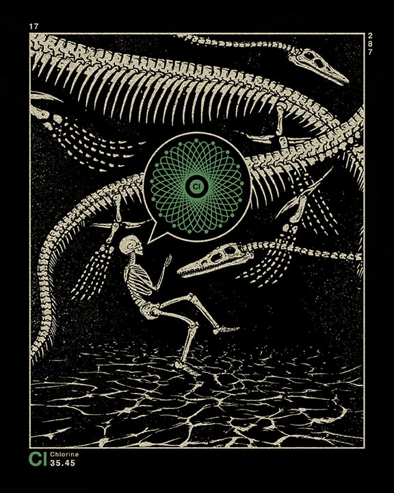 The 17th Element in PERIODIC TABLE OF ELEMENTS - Chlorine - 35.45 2 color screen print (metallic gold) - 8" x 10" - Designed & Printed by Dan McCarthy - August 2022.