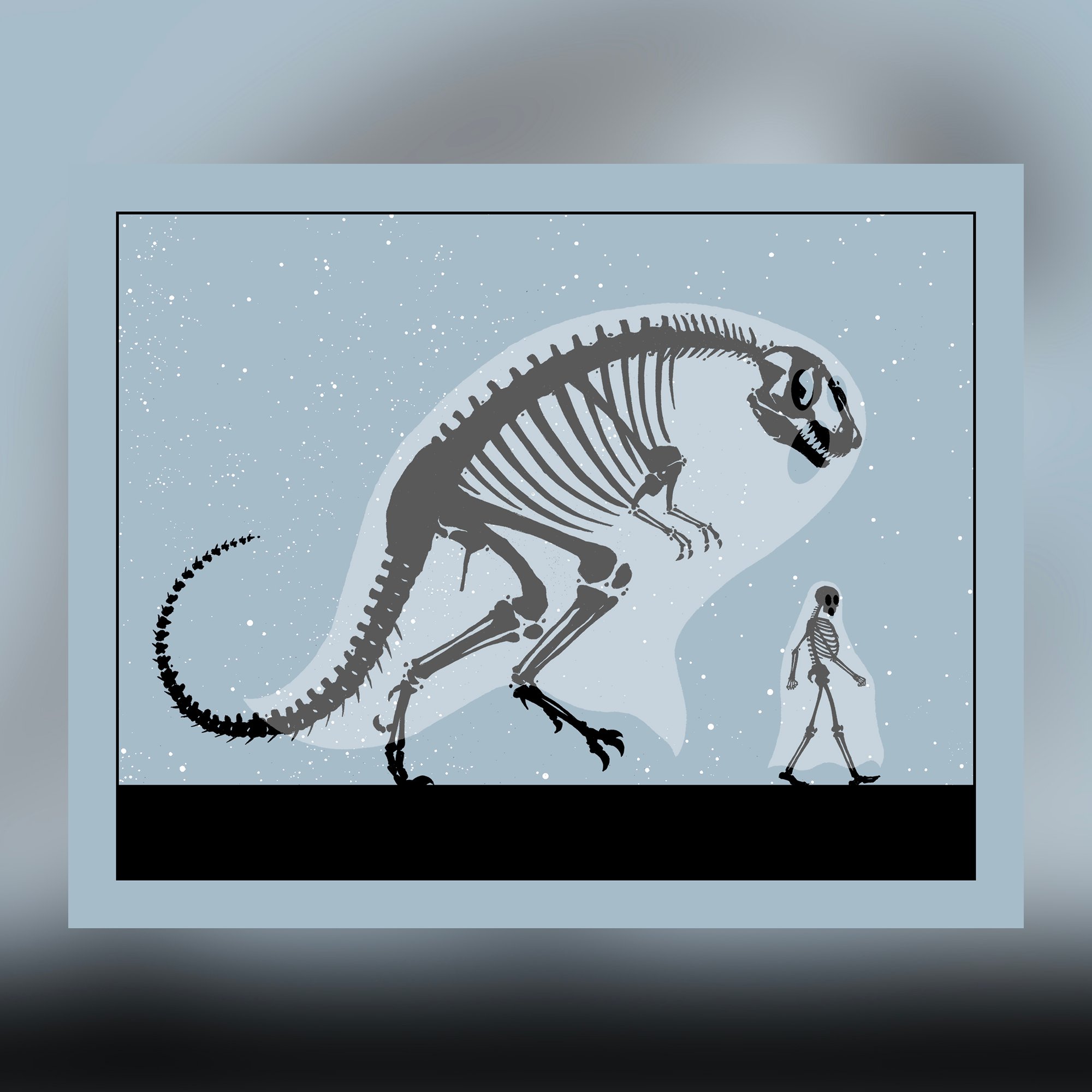 "GHOST BUDDIES" - mini print - 8” x 10”, 3 colors + FREE PIN! PIN GLOWS-IN-THE-DARK