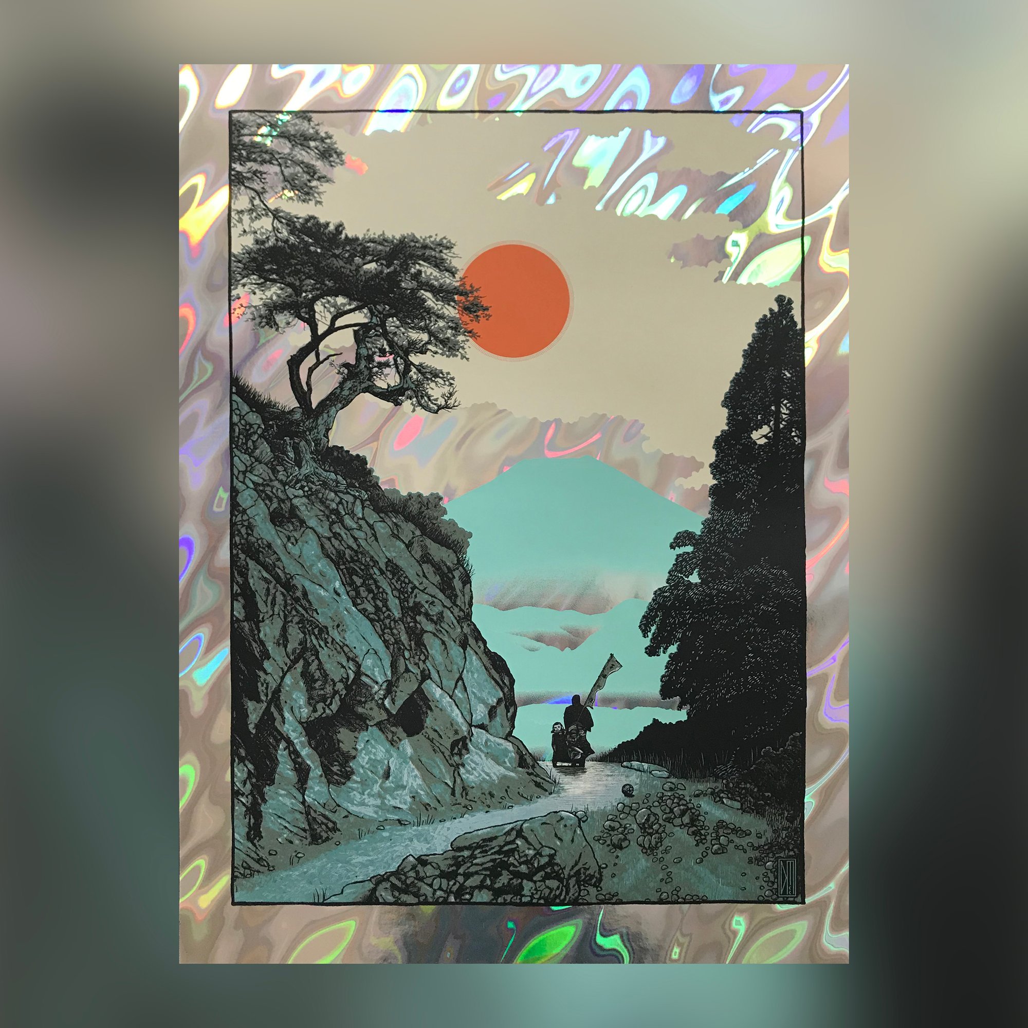 7 color screen print - 18” x 24” - signed & numbered - edition of 40 - printed on Lava Foil Holographic paper - Designed & Printed by Dan McCarthy - April 2020