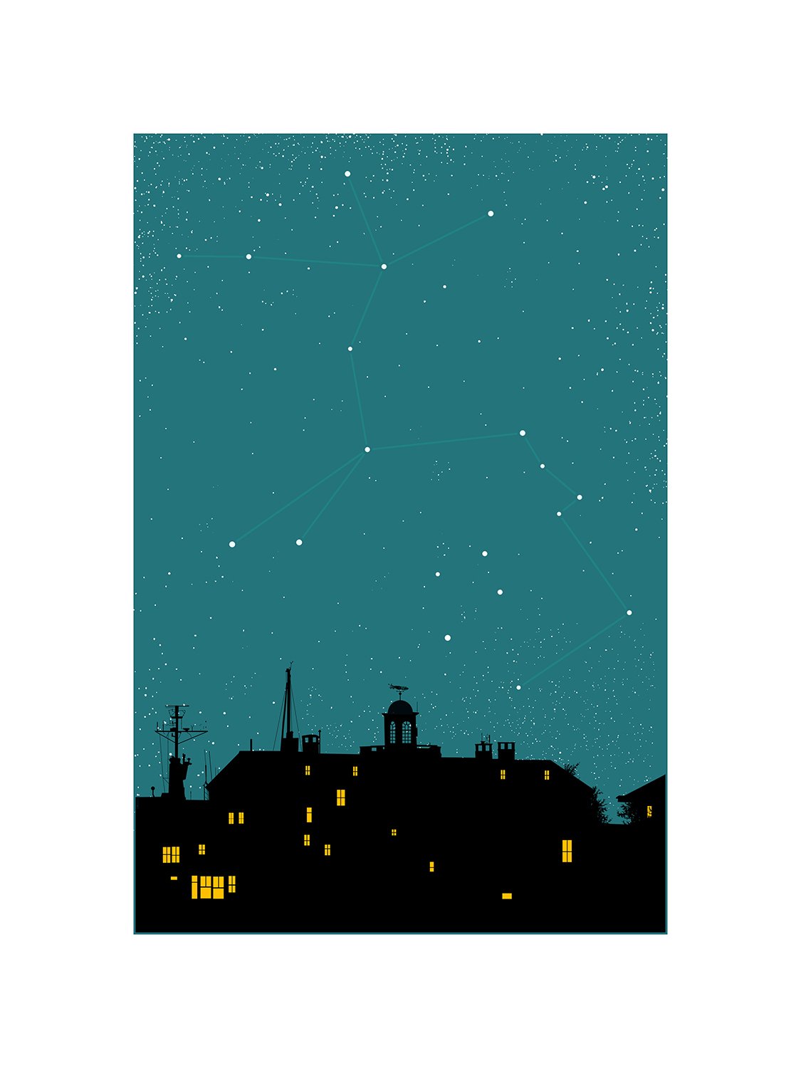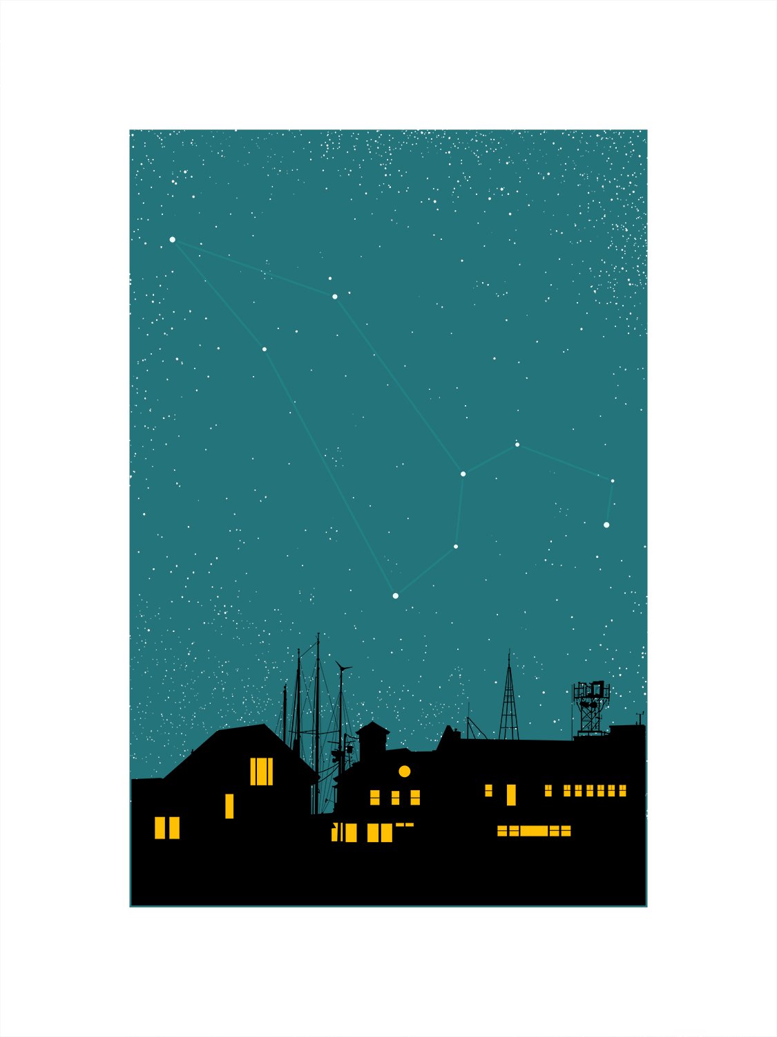 "Night on Earth" is a print series I started in 2015. Each print features one of the 88 constellations printed with glow-in-the-dark ink. Hope to finish all 88 before I am an old man.