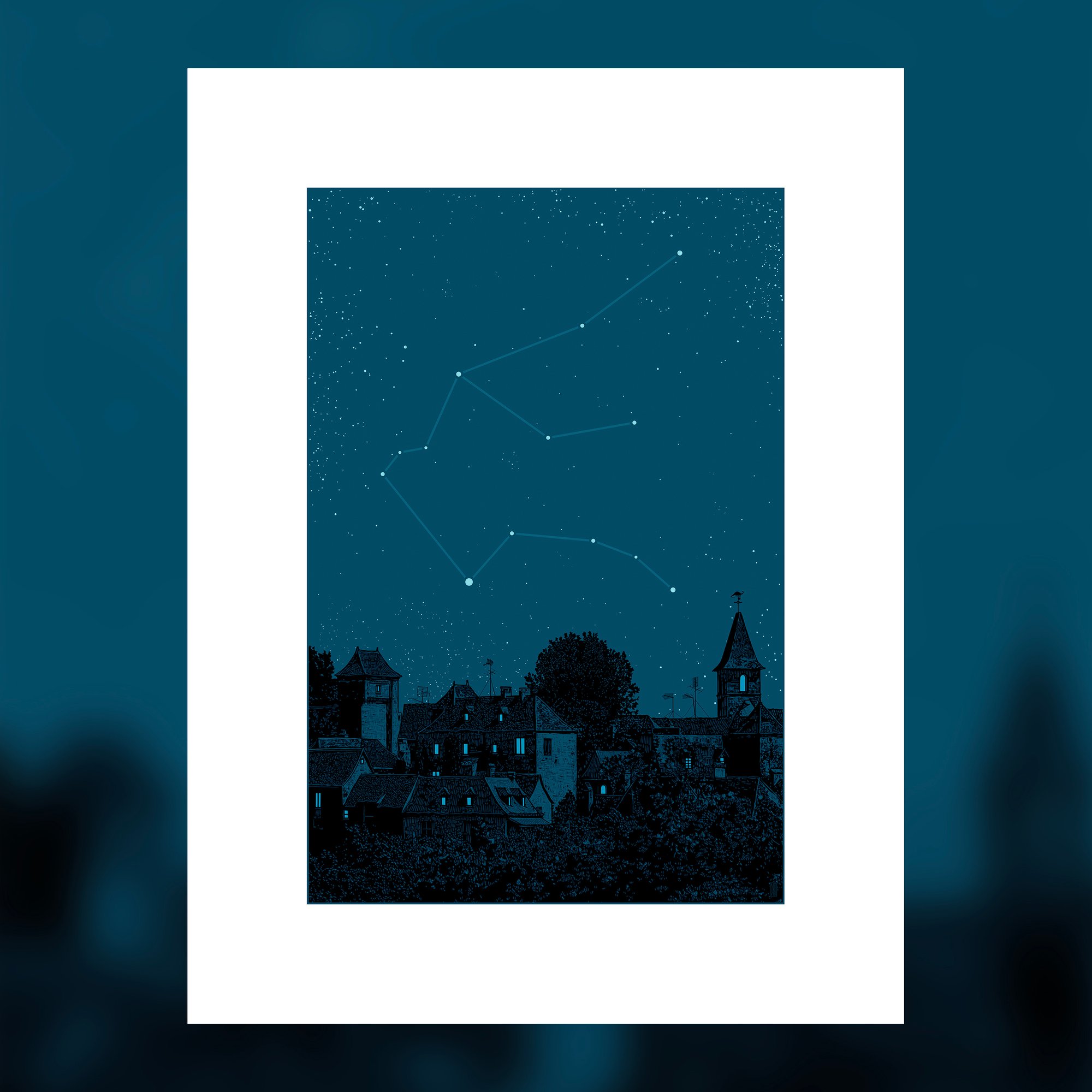 "Night on Earth" is a print series I started in 2015. Each print features one of the 88 constellations printed with glow-in-the-dark ink. Hope to finish all 88 before I am an old man.