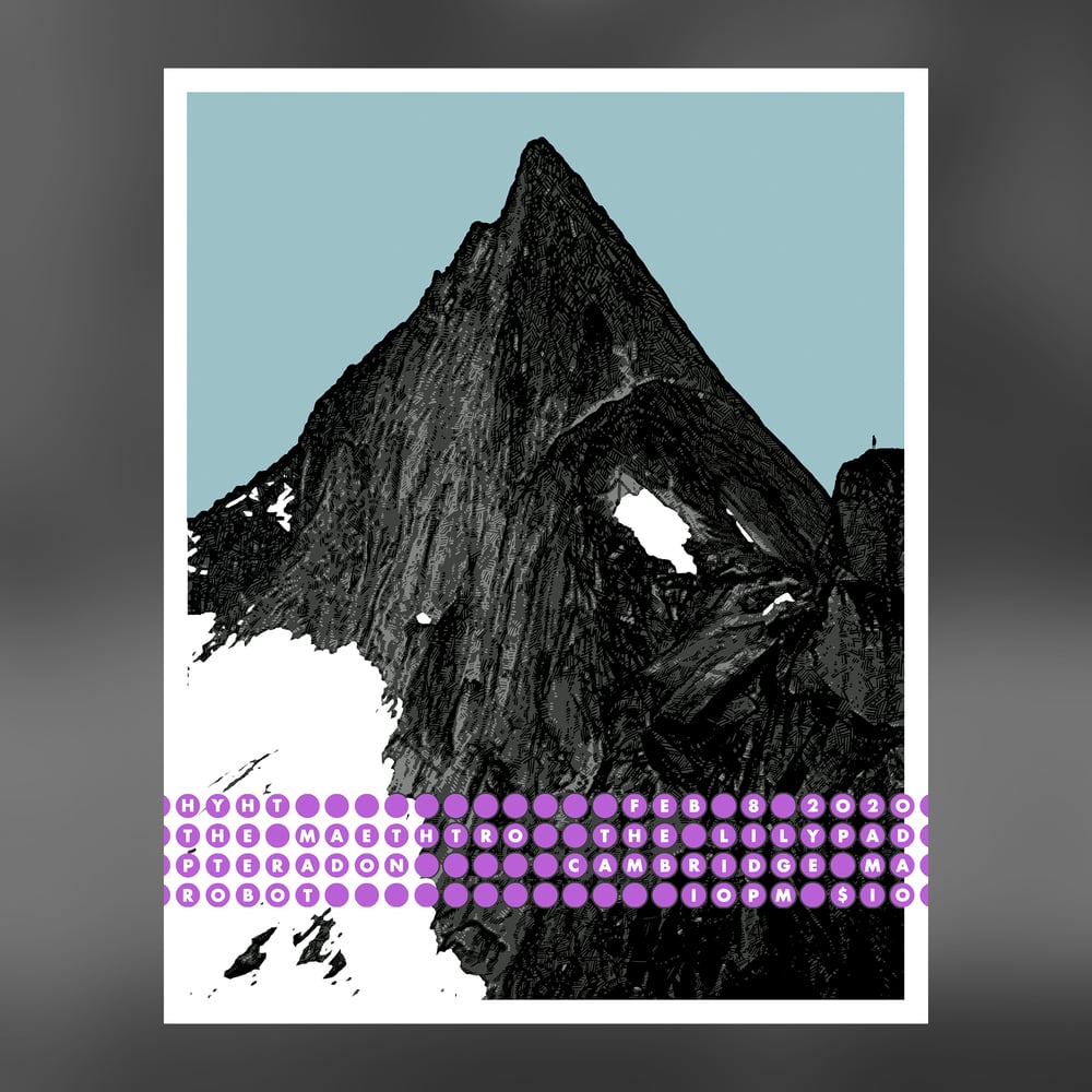 This is a show poster for HYHT, THE MAETHRO, PTERADON, ROBOT, February 8, 2020 at the Lilypad in Cambridge, MA. Pteradon is a music project I have been working on. This was the first performance and it was a lot of fun