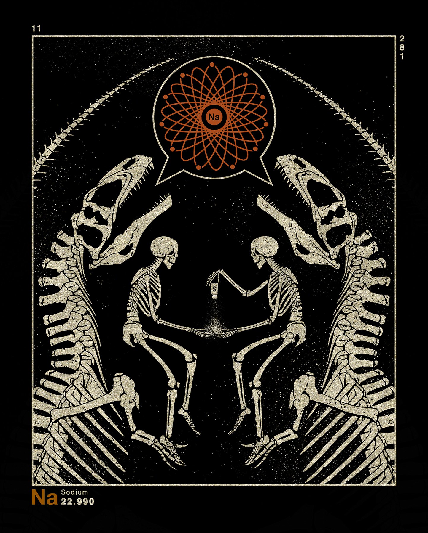 The 11th Element in PERIODIC TABLE OF ELEMENTS - Sodium 22.990 2 color screen print (metallic gold) - 8" x 10" - Designed & Printed by Dan McCarthy - April 2019.